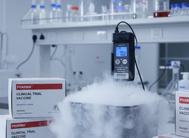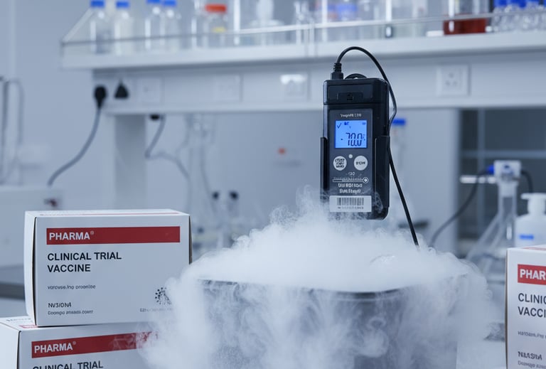 Used to monitor ultra-low temperatures during mRNA vaccine shipments in dry ice containers, ensuring cold chain compliance and FDA-approved logging.