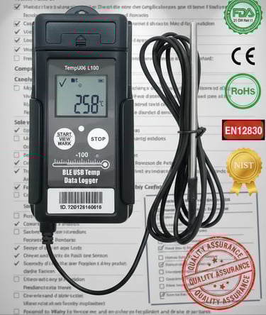 TempU06 L100 Sensor is a compact, high-precision temperature data logger designed for ultra-low temperature environments. With Bluetooth and USB connectivity, it records temperatures from -100°C to +80°C, making it ideal for vaccine transport, cold chain logistics, and lab research. It features an external probe, LCD display, and generates PDF/CSV reports without any software—perfect for quick, compliant monitoring.