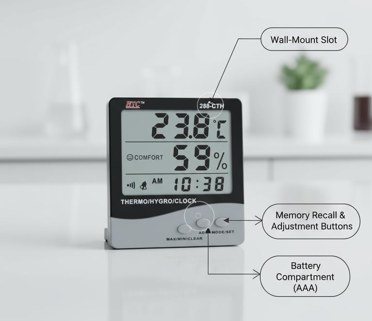 Monitor temperature and humidity with precision using the HTC Thermo Hygro Meter 288-CTH – a trusted choice for homes, labs, and industrial setups across India.