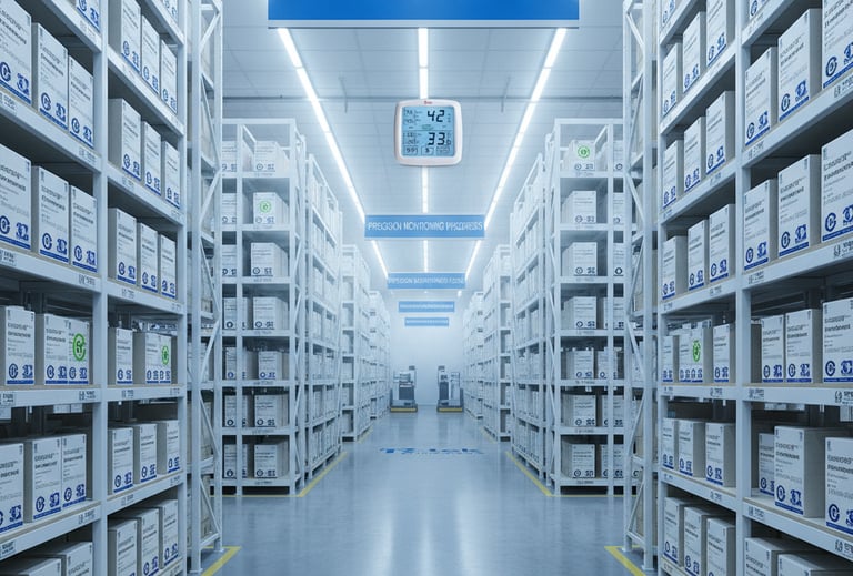 Used to monitor humidity and temperature in pharmaceutical and food storage facilities. Ensures compliance with safety standards and prevents spoilage or degradation of sensitive goods.
