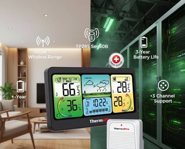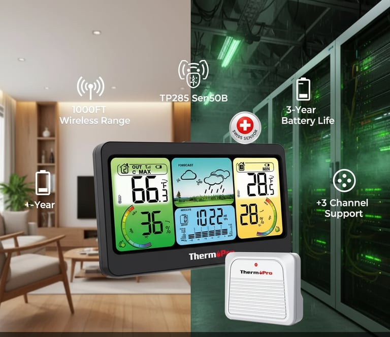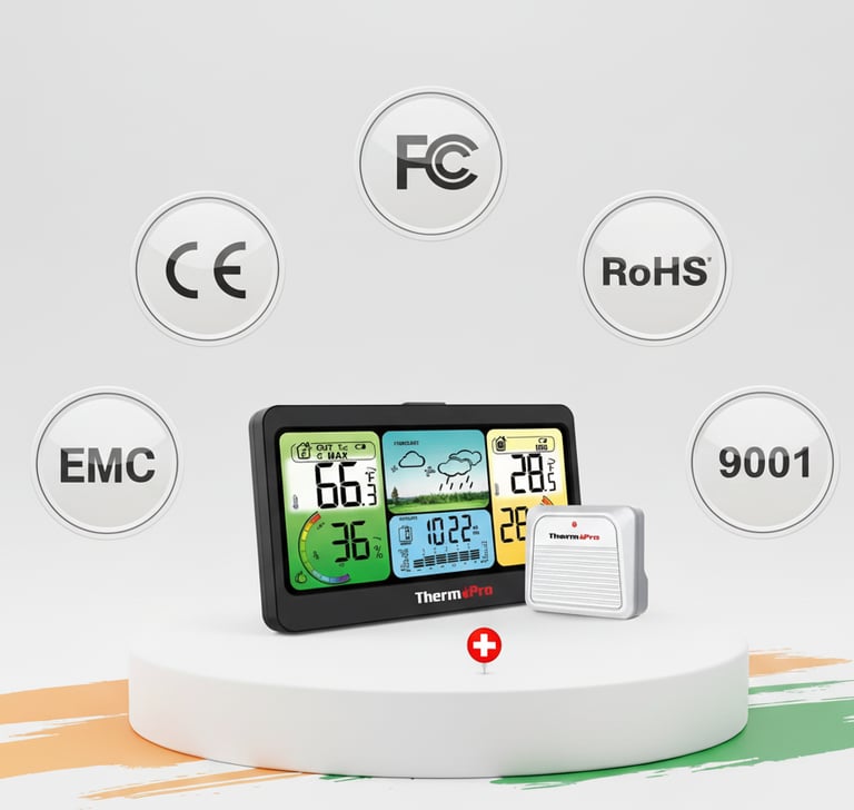 The ThermoPro TP280B Thermo Hygro Meter is a smart indoor-outdoor weather station that tracks temperature, humidity, and atmospheric pressure in real time. Engineered with a Swiss-made sensor, it delivers unmatched accuracy and reliability for Indian households, offices, and greenhouses.