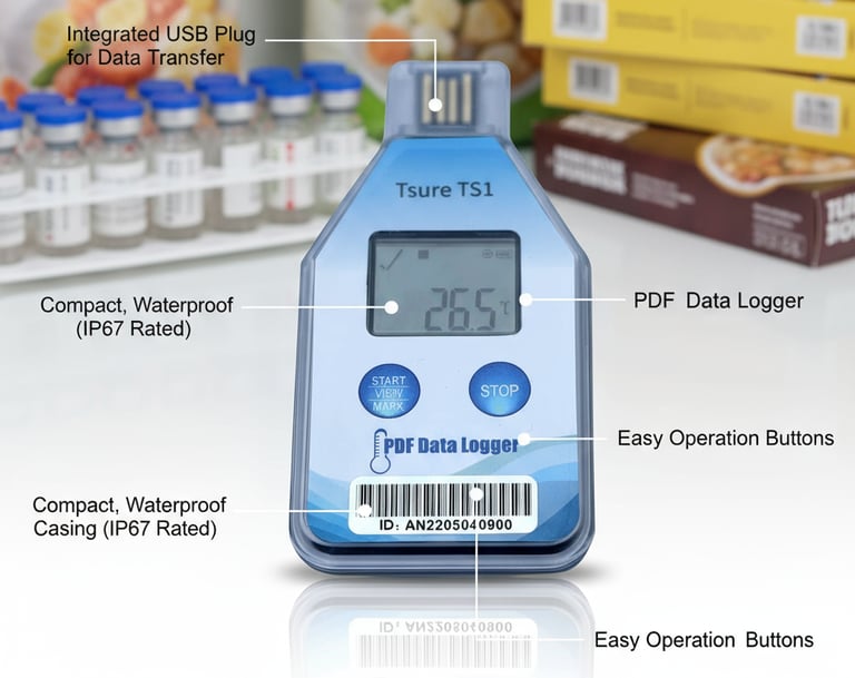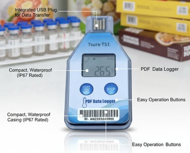 Looking for a compact, single-use temperature data logger that delivers accurate readings and instant PDF reports? The Tsure TS1 USB PDF Temperature Logger is built for pharma, food, and chemical logistics, offering ±0.5°C precision, IP67 waterproofing, and 32,000 readings capacity. Whether you're in Mumbai, Delhi, Bangalore, Hyderabad, Chennai, Kolkata, or any city across India, this logger ensures cold chain compliance with ease.