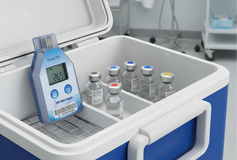 Ensure temperature stability and regulatory compliance for vaccine transportation, insulin delivery, and biologic drug logistics with Tsure TS1 for pharma cold chain. Ideal for GxP-compliant shipping and WHO-recommended temperature logging.