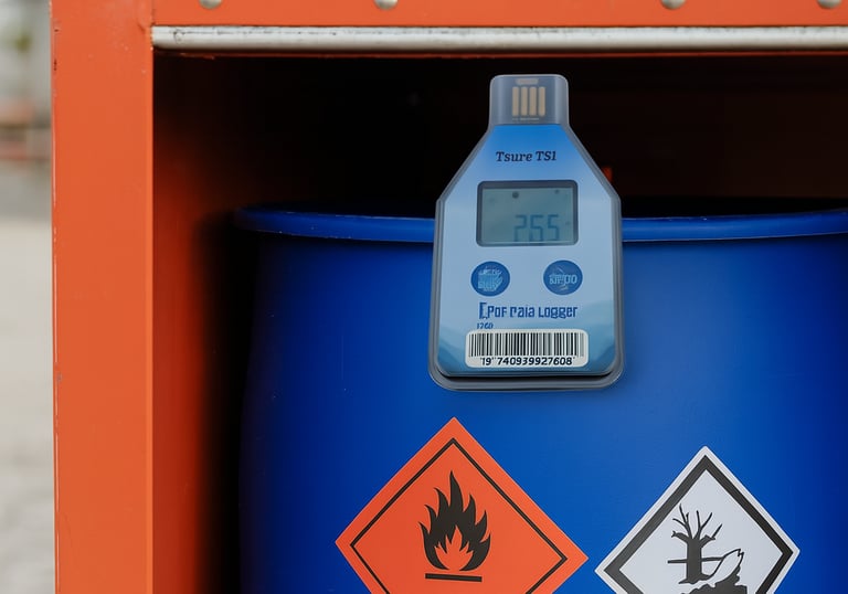 Hazardous Material Monitoring Monitor temperature-sensitive chemicals, volatile compounds, and industrial reagents with Tsure TS1 temperature logger for chemical shipments. Ensures safe transit, compliance with MSDS guidelines, and thermal profiling.